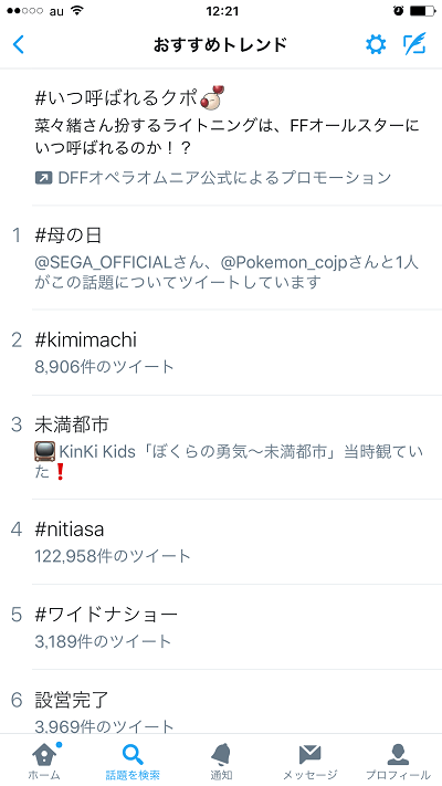 その中で気になるワードを押すことで、トレンド入りしたワードをに関するツイートが表示されます!