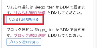 『えごったー』とTwitterのアカウントが連携できたら『リムられ通知を見る』をタップします。