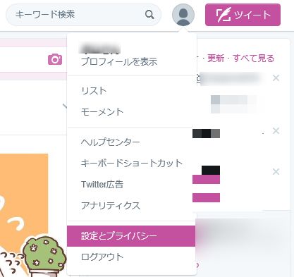 PCのTwitterの「設定とプライバシー」をタップする!
