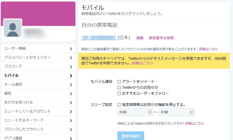 Twitterの電話番号の削除方法(PC)