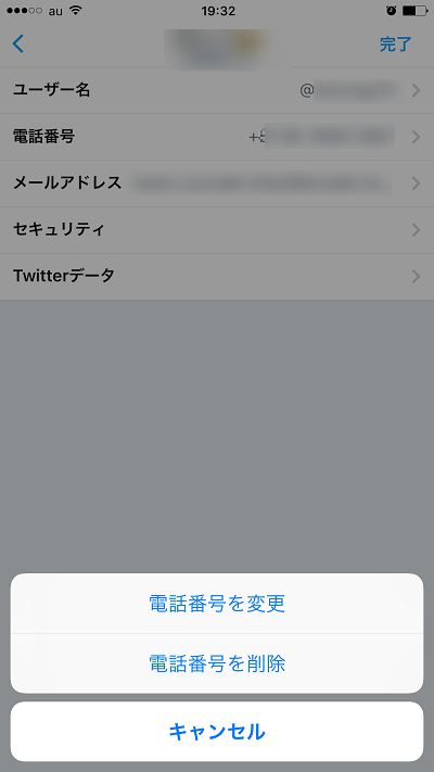 Twitterの電話番号の削除方法(iPhone)