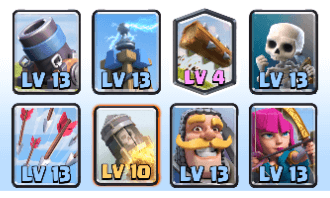 ナイトは万能です!ホグライダーの盾としても十分機能しますし、敵からカウンターを受けた際の盾としても機能します。HPが高いので一撃でやられることはないですし、コスト3ということで出しやすいカードです! このデッキはコスト1のカードが2枚入っているので、防御で上手くエリクサーアドバンテージを作ってホグライダーで片方のタワーを落としていく形が理想です。