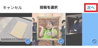 まとめたい画像をタップして右上の『次へ』をタップします。