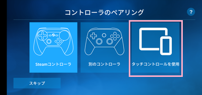 「コントローラのペアリング」画面が表示されるので、「タッチコントロールを使用」をタップしましょう。