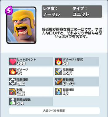 クラロワ「バーバリアン」の性能・ステータス