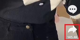 まずTikTokのアプリを開き、音ありで保存したい動画の右側にある矢印をタップします。