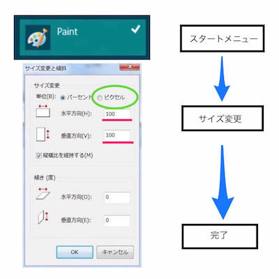 ③ペイントのメニューの「サイズ変更と傾斜」を選択する