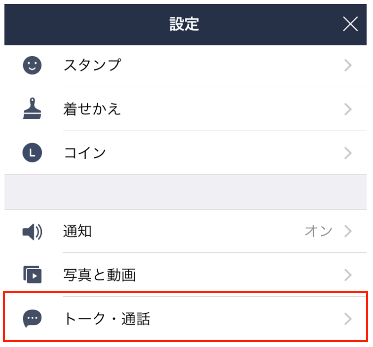 LINEで[設定]ページを開き、その中の「トーク・通話」のメニューをタップしましょう。