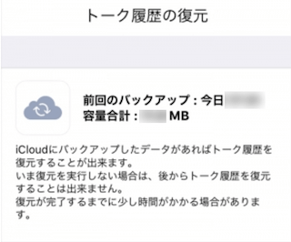 引き継ぎを進めていくと「トーク履歴の復元」のページが表示されます。