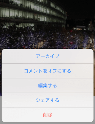 アーカイブの写真の一覧から該当の写真でまたメニューを開きます。