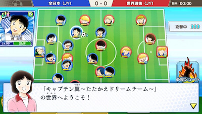 「キャプテン翼 〜たたかえドリームチーム〜」は、キャプテン翼の世界を舞台に、オリジナルのサッカーチームを作成していくシミュレーションゲームです。 キャプテン翼のストーリーを楽しむ「シナリオ」や全国のプレイヤーと獲得ポイントを競う「リーグ」などのモードで、試合を行いながら遊んでいきます。