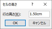 「行の高さ」ダイアログボックスが表示されます。単位をセンチメートルで指定できるので、高さの数値を入力してから「OK」をクリックしましょう。
