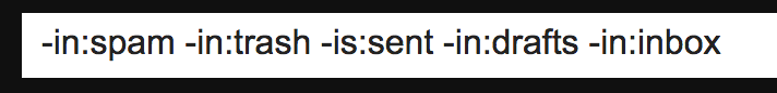 gmailの検索欄に「-in:spam -in:trash -is:sent -in:drafts -in:inbox」と入力し検索してみましょう。