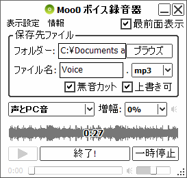 無音部分のカット機能も搭載しているので、動画の合間などの無駄な部分をばっさりカットしてくれます。 保存形式はMP3・WAVの2つです。
