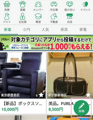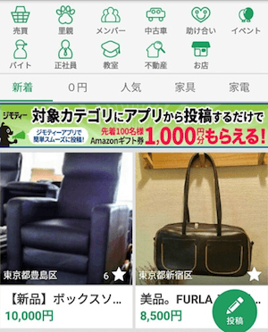 それではジモティーのアプリの使い方や機能をご紹介していきます。