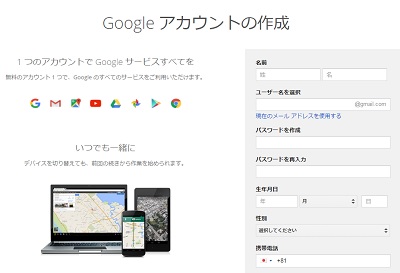名前・ユーザー名・パスワード・生年月日・性別・携帯電話の番号・現在使用可能なメールアドレス・地域を入力してアカウントを登録します。