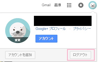 まずは今使っているGoogleアカウントからログアウトしましょう。Googleのトップページ右上の自分のアイコンをクリックし、ポップアップメニュー右下にある「ログアウト」ボタンをクリックします。