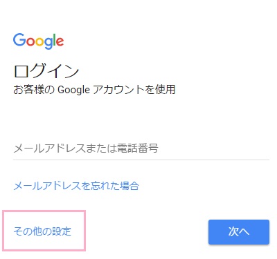 ログイン画面左下の「その他の設定」をクリックします。