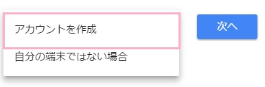 メニューが表示されるので「アカウントを作成」をクリックしましょう。