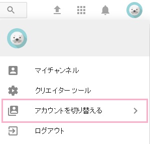 チャンネルを切り替えるには画面右上のアカウントアイコンをクリックし、メニューの「アカウントを切り替える」をクリックします。
