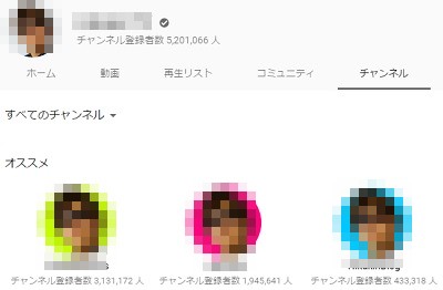 画像は有名YouTuberの方のチャンネルですが、メインチャンネルの他にゲーム実況用チャンネル・ビートボックス用チャンネル・ブログ用チャンネルを作っており、上手く使い分けていますね。