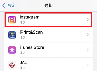「通知」が開いたら「Instagram」をタップします。