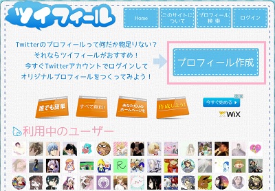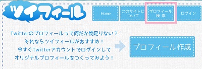 それでは、ツイフィールの使い方を説明していきます。 まずはツイフィールにアクセスし、トップページの「プロフィール作成」ボタンをクリックしましょう。