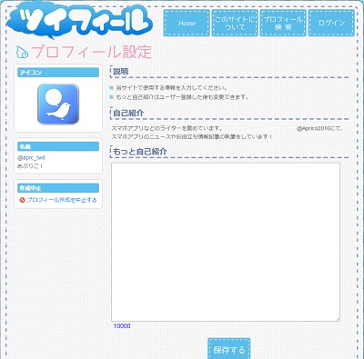 自己紹介なのだからたくさん書きたいというユーザーも多いと思います。そんな方々におすすめのサービスが「ツイフィール」です。