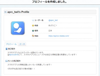 これでツイフィールの作成が完了しました。このツイフィールページをTwitterのプロフィールに設定してフォロワーや他のユーザーに見せましょう。