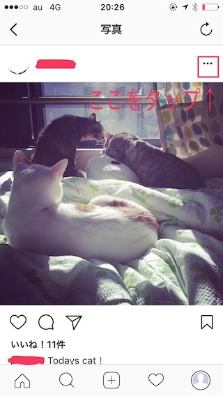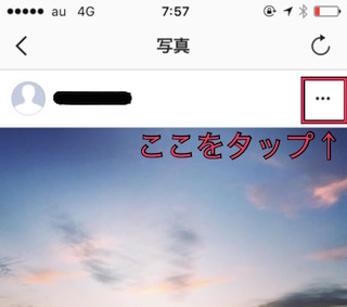 まずは、シェアしたい写真を選んだら、右上にある点が3つ並んでいるコマンドをタップします。