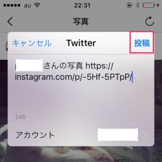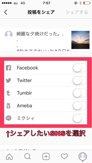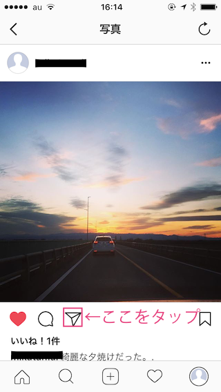 次は自分のフォロワーに自分の写真をシェアする方法をご紹介します。