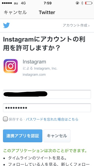 シェアしたいSNSを選択すると、選択するごとにそのSNSへのログインが必要になりますので、IDやパスワードを記入してログインしましょう。