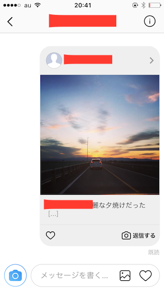 すると、相手にダイレクトメッセージが届き、無事に選択した写真がシェアされました。これで自分の投稿をフォロワーにシェアすることができます。
