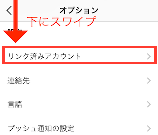 下にスワイプして行くとリンク済みアカウントの項目が出てくるので、タップします。