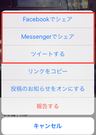 点をタップすると、選択項目が出てきますので、シェアするを選択します。