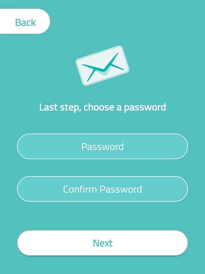 「Password」がパスワード、「Confirm Password」がパスワード確認欄となっています。どちらにも同じパスワードを入力したら「Next」をタップしましょう。