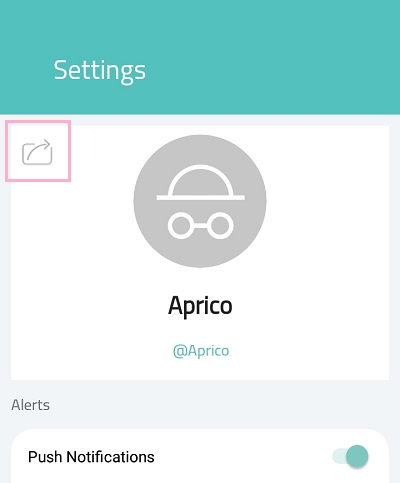 設定画面に移ります。画面左上の矢印のアイコンが共有ボタンになっており、URLをコピーしたり他のSNSなどで知らせることができるようになっています。