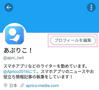 例として、ツイッターのプロフィールに設定してみます。