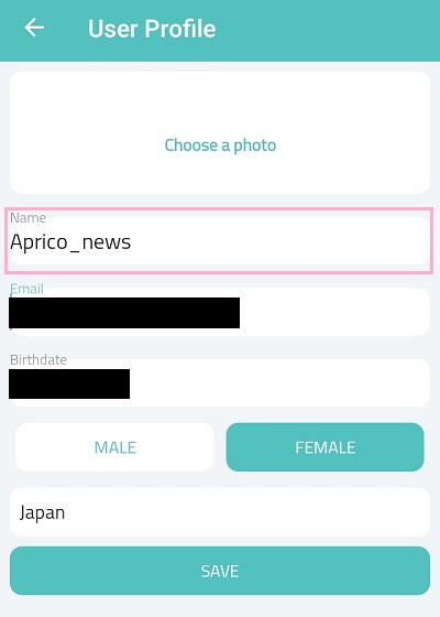 「Name」の入力欄が表示名になっているので、ここに変更したい名前を入力して、画面下部の「SAVE」をタップすれば名前が変更されます。
