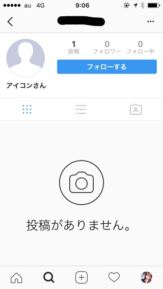 自分や相手のどちらかがブロックしていると、左の画面のように「投稿がありません。」と表示されます。