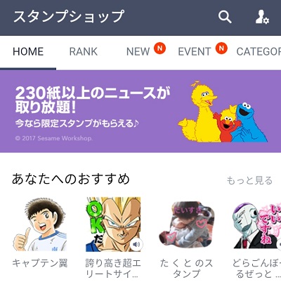 スタンプショップから、適当なスタンプセットをタップします。