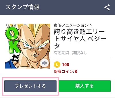 開いたスタンプページで「プレゼントする」をタップします。