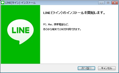 LINEのインストール画面が出るので、「次へ」ボタンをクリックします。