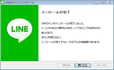 「閉じる」ボタンをクリックすると、LINEが起動します。