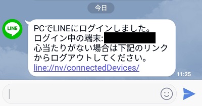 PC版LINEにログインすると、スマホアプリ版のほうでログイン情報が表示されます。