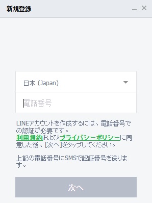 PC版LINEを起動すると、画面下部に「新規登録」と書かれたボタンがあります。それをクリックしましょう。