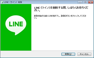 アンインストールウィンドウが表示されます。LINEを終了していることを確認し、「削除」ボタンをクリックしましょう。そのまましばらく待つと、アンインストールが完了します。