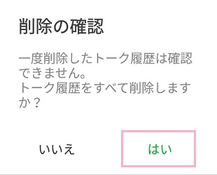 確認画面が出るので「はい」を選びトークルームを削除しましょう。