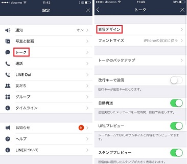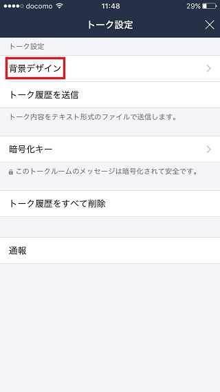 ③トーク設定画面で「背景デザイン」を選択します。