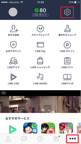 ①「LINE」の右下にある「・・・」から、右上にある「設定」を選択します。